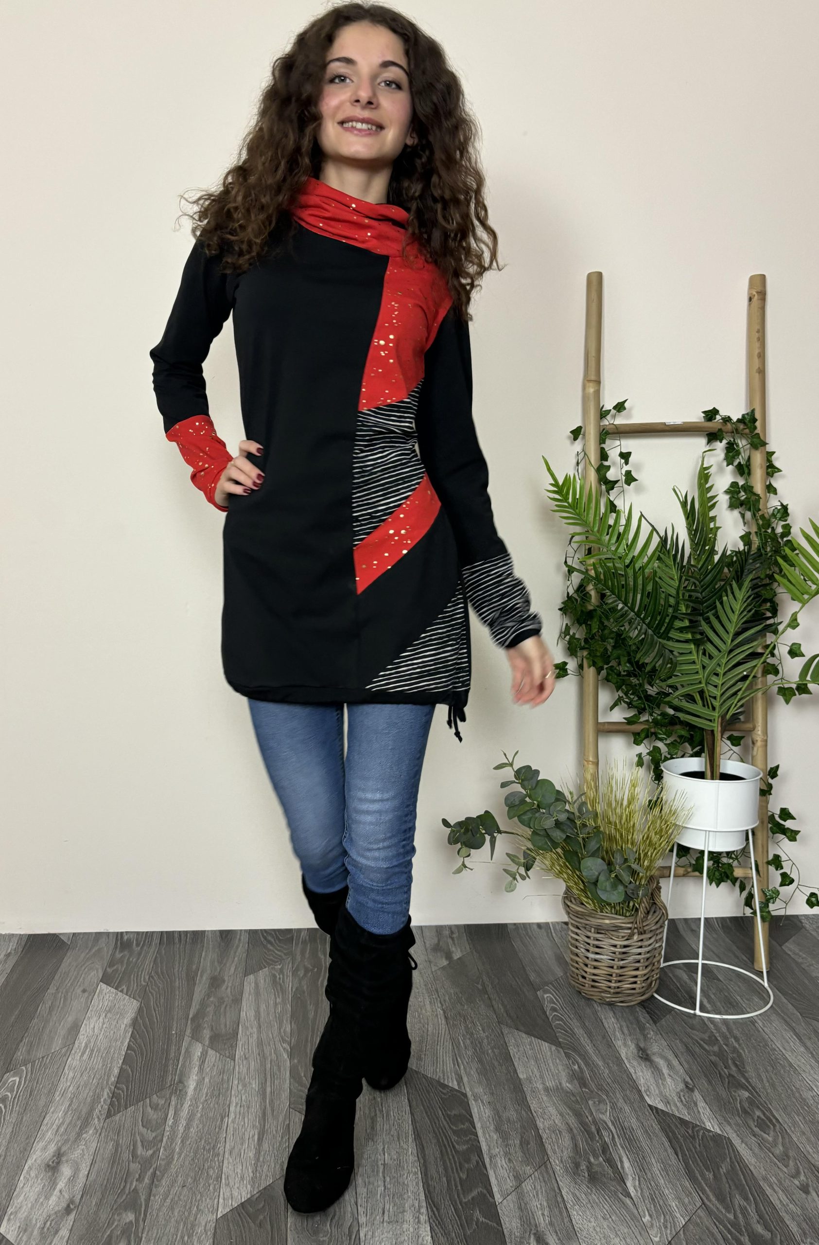 Tunika je na zalogi v številki S. 95% bombaž, 5% elastan.