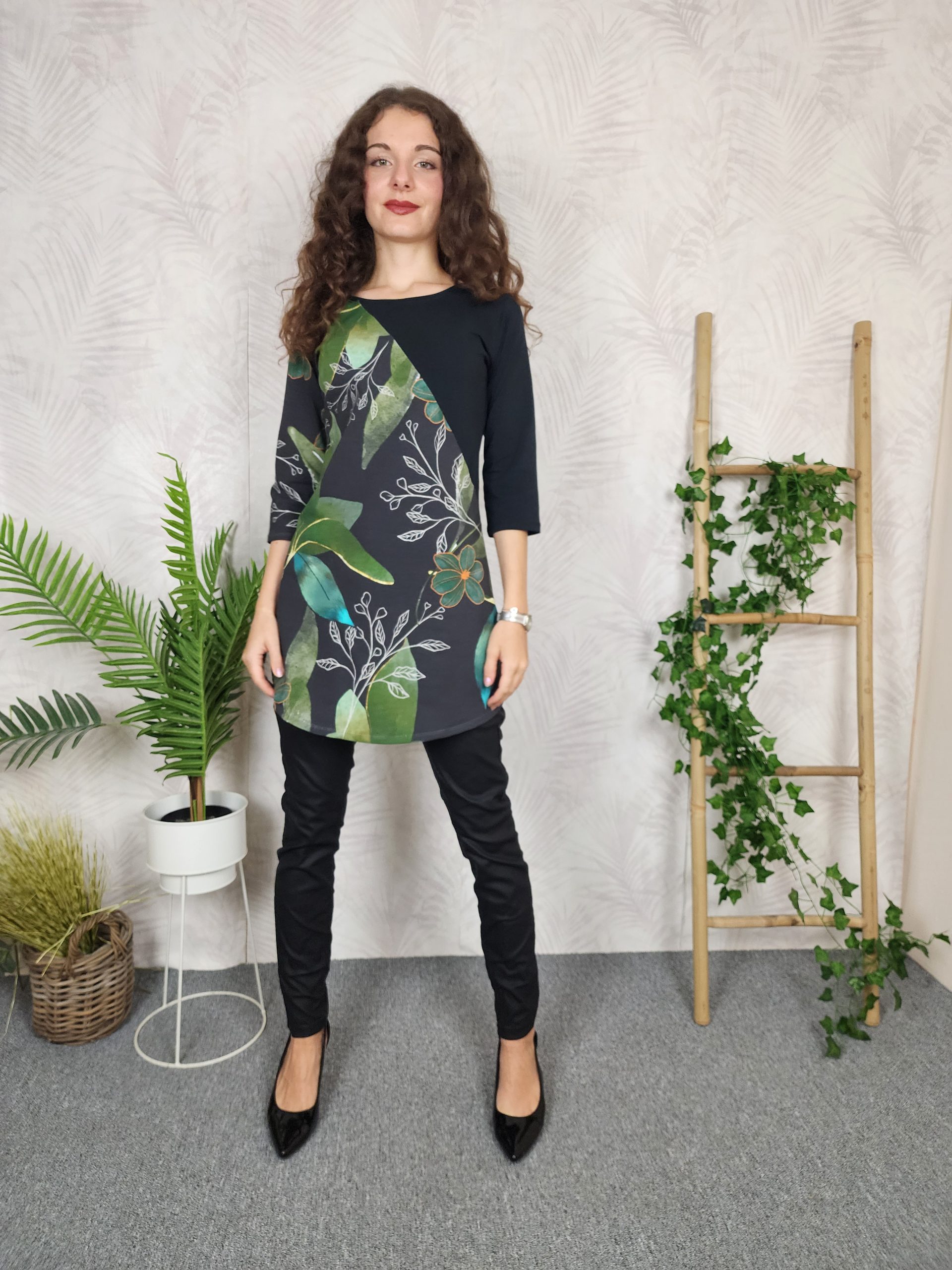 Tunika je na zalogi v številki S.  95% bombaž, 5% elastan.